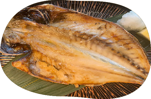 あじ開き伊豆の老舗干物屋さん特製のあじ開きを1枚使用。適度に脂がのっている飽きのこないお味です。
